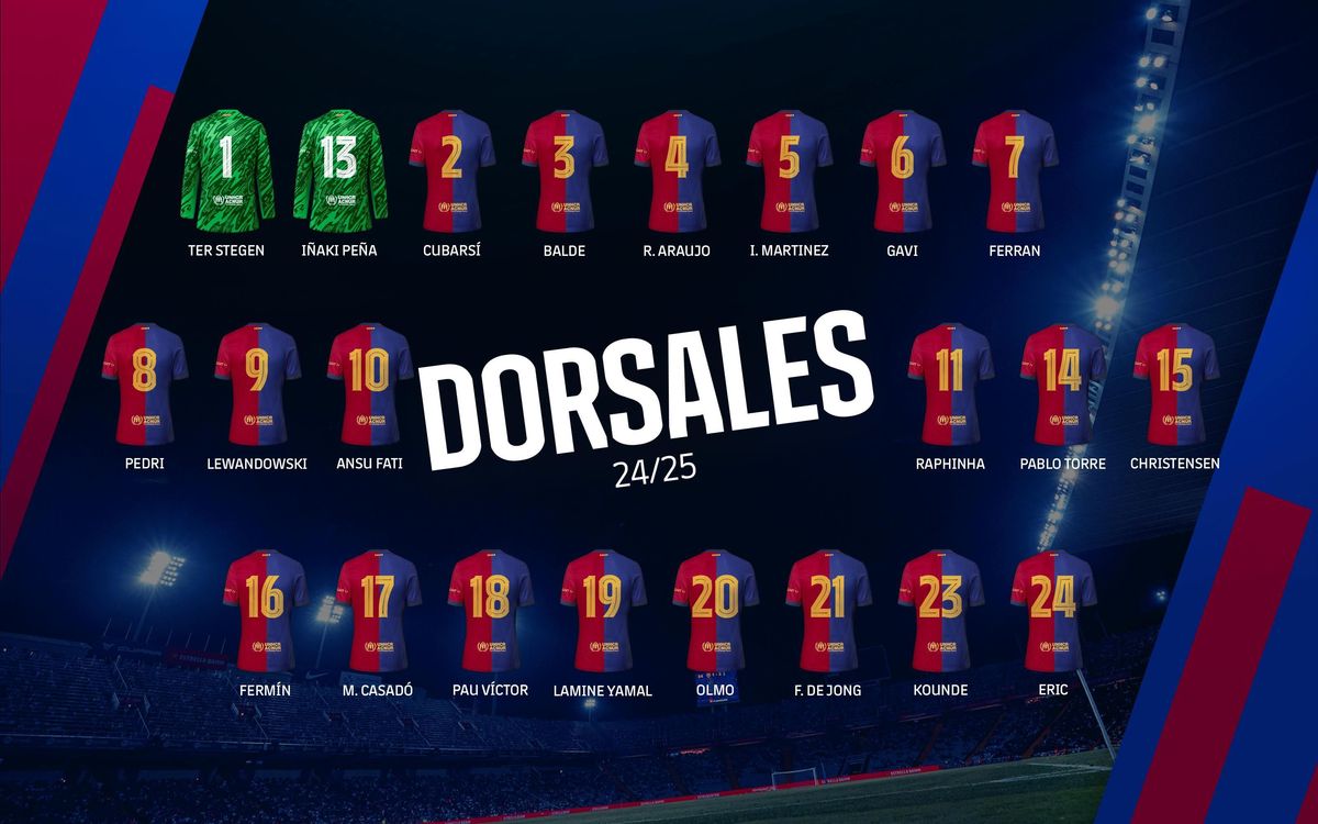 Los dorsales oficiales del FC Barcelona para la temporada 2024/25