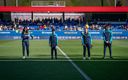 En la previa del partido ante el Alavés, las futbolistas Berta Doltra y Martina Fernández, jugadoras del Barça Atlético Femenino, junto con Madou Murcia y Juan Pablo Galbarro del cadete B de fútbol masculino han leído el texto en que se “denuncian todas las formas de violencias machistas”.