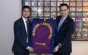 El consejero de Territorio y Sostenibilidad, Damià Calvet, el presidente del FC Barcelona, Josep Maria Bartomeu, y el comisionado del proyecto del Espai Barça, Jordi Moix, se han encontrado hoy en las oficinas del FC Barcelona para valorar la reciente aprobación del proyecto urbanístico del Espai Barça.