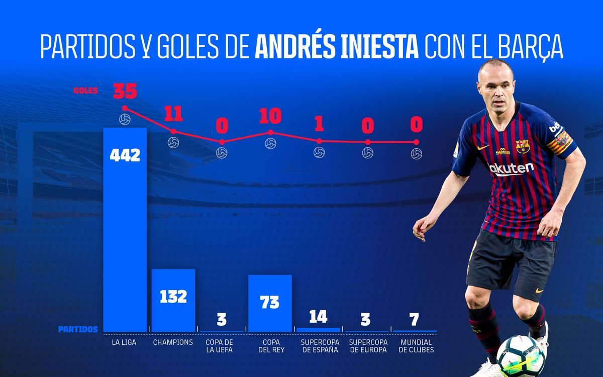 Un legado que le ha visto triunfar con la camiseta del Barça en 723 ocasiones (sumando los partidos del Barça Atlètic), ser un héroe en Japón con el Vissel Kobe (134 apariciones) y ahora defender los colores del Emirates Club (12). Además, con la selección española fue internacional hasta en 131 ocasiones, entre las que se encuentra el legendario gol contra los Países Bajos que supuso el primer Mundial de la historia de España.