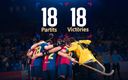 Con el triunfo de este jueves en el Palau Blaugrana, el Barça sigue sumando los partidos de OK Liga por victorias. El equipo entrenado por David Cáceres suma la 18ª victoria seguida en 18 partidos y logra un hito histórico, nunca visto con anterioridad. El conjunto azulgrana ha logrado el mejor inicio de la historia de la OK Liga.