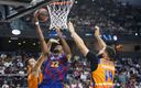 Barça: Claver (11), Mirotic (14), Tomic (3), Pangos (5) y Higgins (15) -cinco inicial- Davies (6), Delaney (8), Hanga (-), Smits (-), Kuric (9) y Oriola (-).