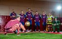 Duelo de juegos con la pelota entre los jugadores del Barça y los artistas de ‘Messi 10 by Cirque du Soleil’