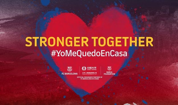 Al inicio de la emergencia sanitaria, cuando China se situaba como uno de los países más afectados y con más contagios, el FC Barcelona quiso mostrar su apoyo al pueblo chino con una acción solidaria antes del partido de Liga contra el Getafe el 15 de febrero pasado, cuando los jugadores de ambos equipos saltaron al terreno de juego acompañados por los niños y niñas de la Peña ¡Dracs Units Xinesos pel Barça’, que lucían una camiseta con el mensaje: Stronger Together (‘Unidos, somos más fuertes’) y con el escrito en chino, 中国加油, que significa ‘Ánimos, China’. Como parte de la misma acción, en el centro del campo se desplegó una lona donde también se podía leer el lema de la iniciativa en inglés y chino.