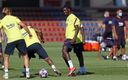 O. Dembélé y R. Araujo entrenan con el grupo