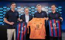 Lo ha hecho en la sala de prensa del Palau Blaugrana, con el directivo responsable de la sección, Joan Solé, y los jugadores Hampus Wanne, Jonathan Carlsbogard y Emil Nielsen