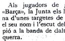 “Als jugadors de postín del “Barça” la Junta els ha fet ofrena d’unes targetes de visita amb el seu nom i l’escut del club campió a la banda de dalt, a mà esquerra”