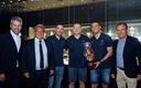La liga de fútbol sala ya está en casa. Concretamente en el Barça Immersive Tour, situado en la que era la Pista de Hielo. Tras ganar la liga este mismo viernes con un play-off inmaculado, y un 3-0 en la final ante el Jaén, el coordinador deportivo Jordi Torras, el técnico Jesús Velasco y dos de los capitanes Sergio Lozano y Dídac Plana han llevado el trofeo hasta las vitrinas azulgranas, acompañados del presidente Joan Laporta y del directivo responsable de la sección Aureli Mas.