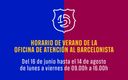 A partir del 16 de junio y hasta al 14 de agosto, el horario de la Oficina de Atenció al Barcelonista (OAB) será de lunes a viernes de 9 a 16 horas.