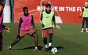 El astro azulgrana y el central francés comprobaron de primera mano la calidad de sus compañeros en uno de los ejercicios habituales de entrenamiento del conjunto de Valverde