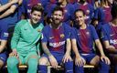 Disfruta con las escenas de una mañana de sonrisas en la Ciudad Deportiva, con la fotografía conjunta de los dos equipos azulgranas