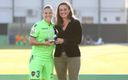 La defensa, que ha dejado un gran recuerdo por su calidad en el eje de la defensa y humana, recibía un merecido obsequio de manos de la directiva responsable de la sección, Maria Teixidor.