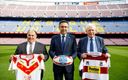 El FC Barcelona, conjuntamente con los Dragons Catalans de Perpiñán y el Wigan inglés, han anunciado hoy que el próximo 18 de mayo, a las 16.00 horas, el Camp Nou acogerá el partido que enfrentará a los dos clubes en la Super League de rugby a 13. El anuncio se ha oficializado hoy en un acto celebrado en el Camp Nou con la presencia de los presidentes de los tres clubes implicados, Josep Maria Bartomeu, como anfitrión, Bernard Guasch, máximo dirigente de los Dragons Catalanes, e Ian Lenagan, presidente del Wigan, los cuales han podido disfrutar de una visita por el Museo del FC Barcelona para conocer la historia del Barça y ver de primera mano el Camp Nou.